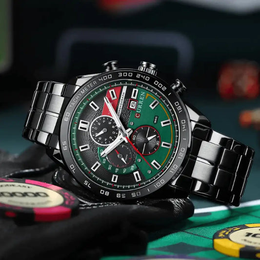 Reloj Curren 8418 Cronógrafo En Acero Para Hombre Plateado - Verde