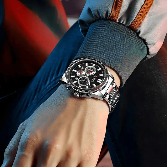 Reloj Curren 8410 Cronógrafo En Acero Para Hombre Negro