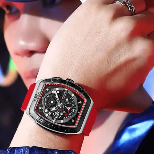 Reloj Curren 8443 Cronógrafo En Resina Para Hombre Rojo
