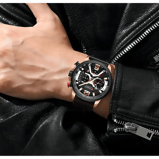 Reloj Curren Cronógrafo 8329 En Cuero Para Hombre Negro - Oro Rosa
