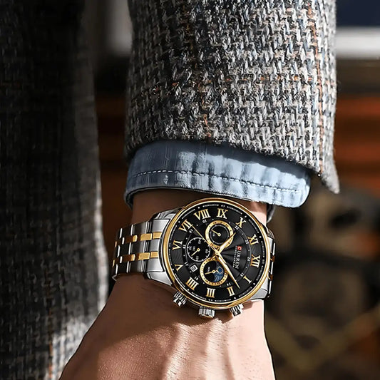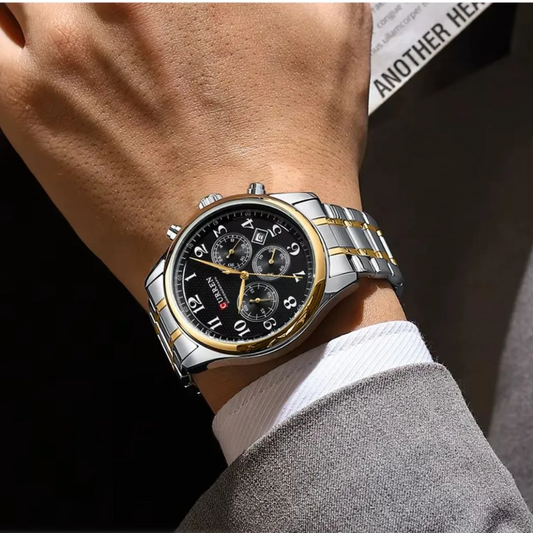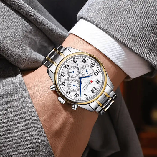 Reloj Curren 8427 Cronógrafo En Acero Para Hombre Plateado - Dorado
