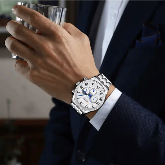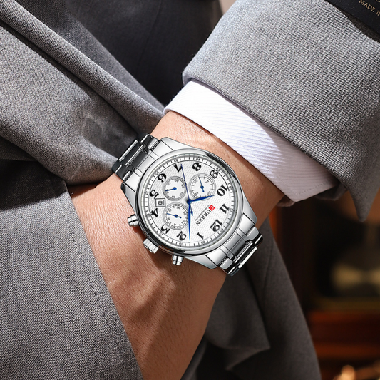 Reloj Curren 8435 Cronógrafo En Acero Para Hombre Plateado - Blanco