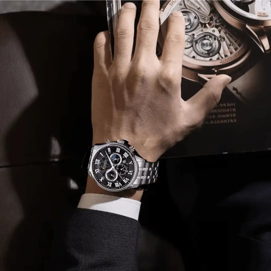 Reloj Curren 8435 Cronógrafo En Acero Para Hombre Plateado - Negro