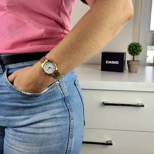 Reloj Casio LTP-1234GLL-7A En Cuero Para Dama