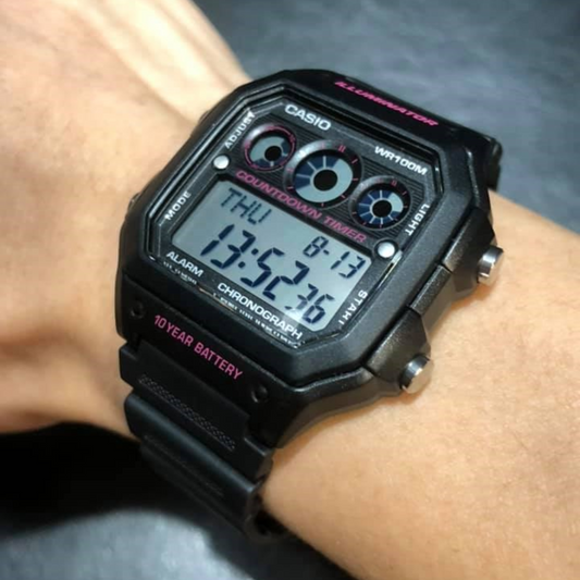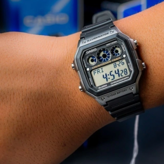 Reloj Casio ae-1200wh-1bvdf Resina Negra - Detalles Dorados
